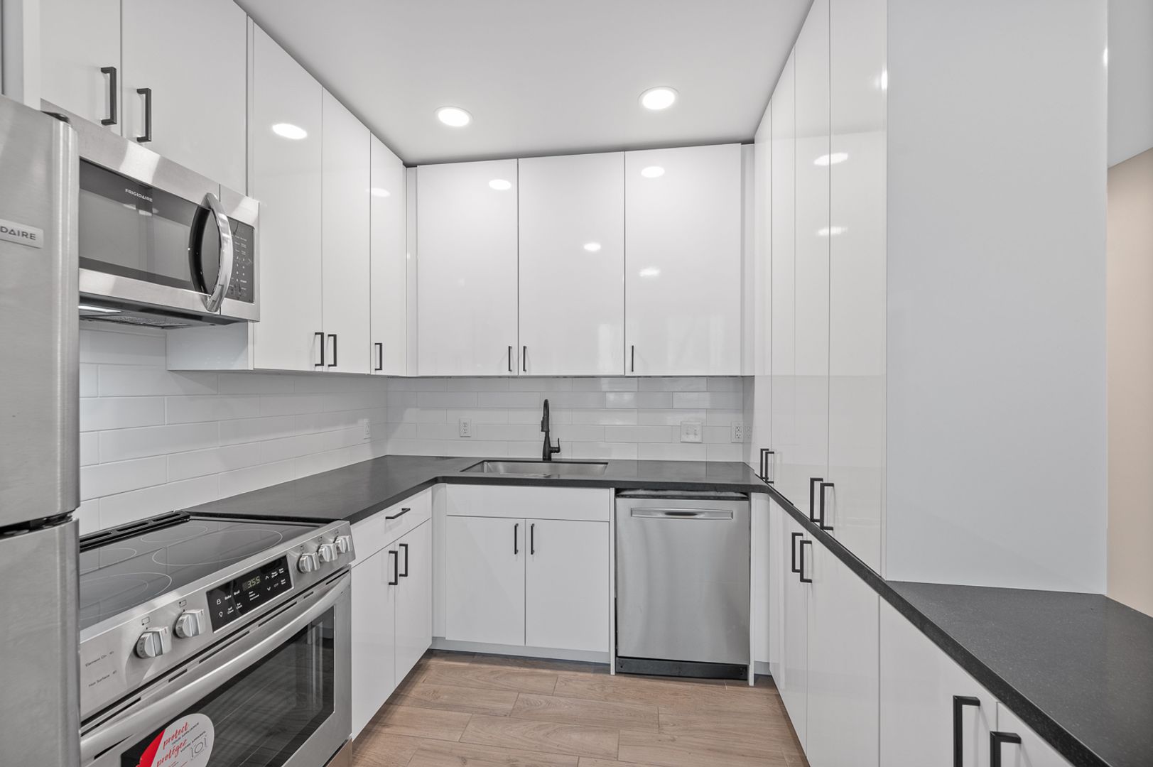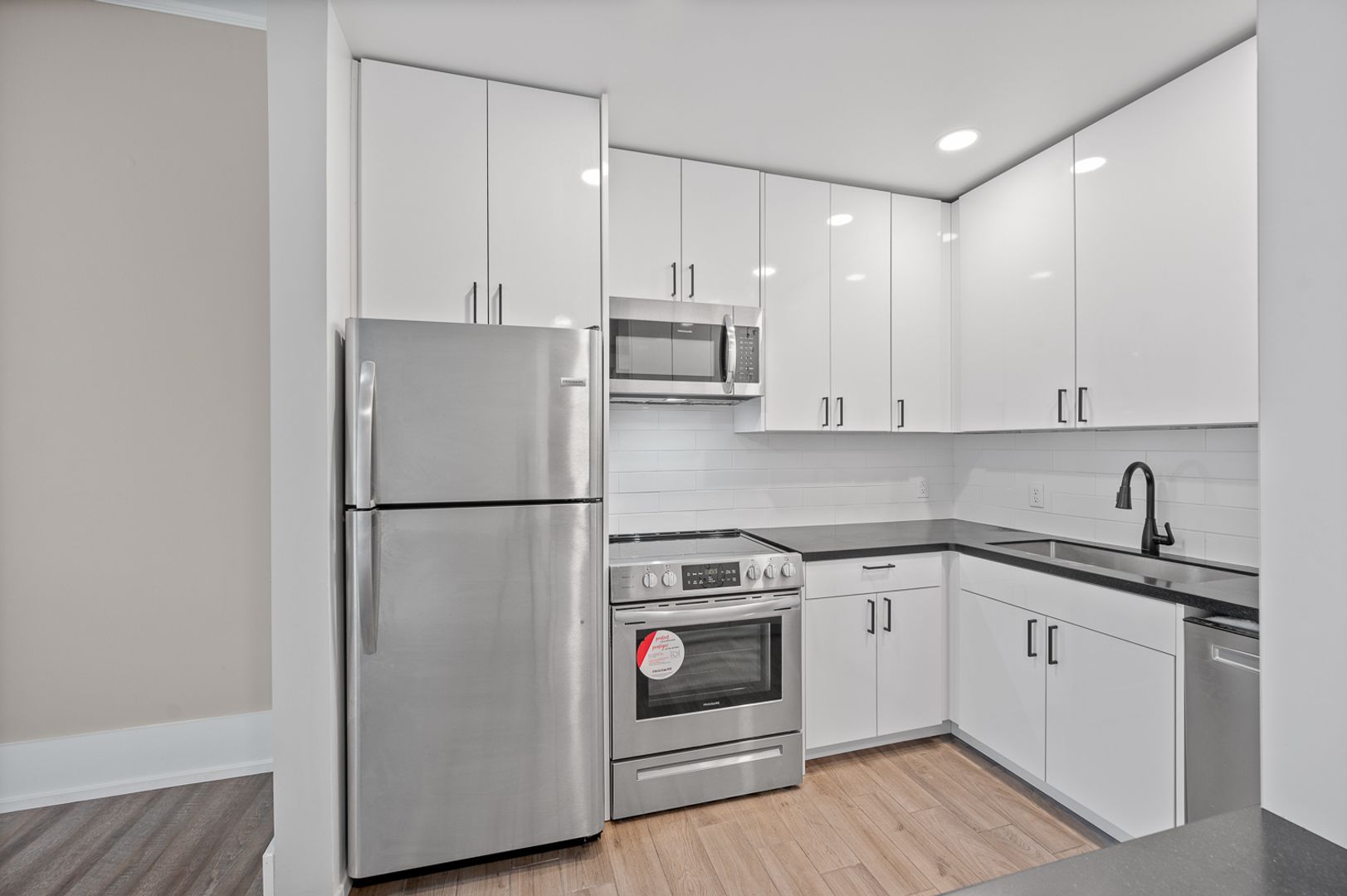 The unit has been fully renovated and features granite countertops, stainless appliances and hardwood floors. The high ceilings and large windows provide ample natural light into every room. In unit laundry is a dream! No need to head to the laundromat or carry laundry up and down stairs!