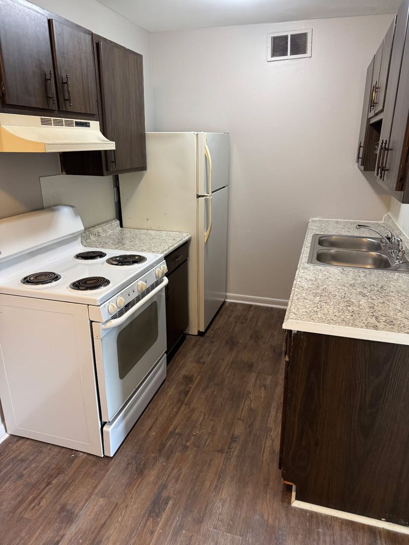 This unit has vinyl plank flooring, eat in kitchen, living room and 2 bdrm rooms, 1 bath. On site parking or street, onsite coin laundry for tenants only. NO PETS , NO SMOKING.