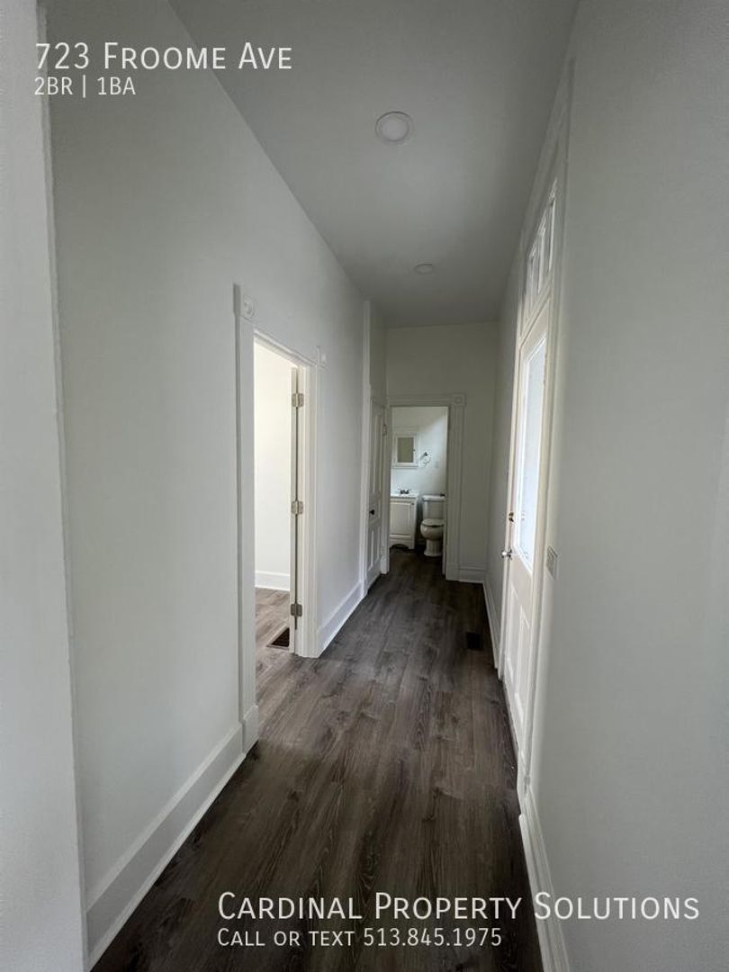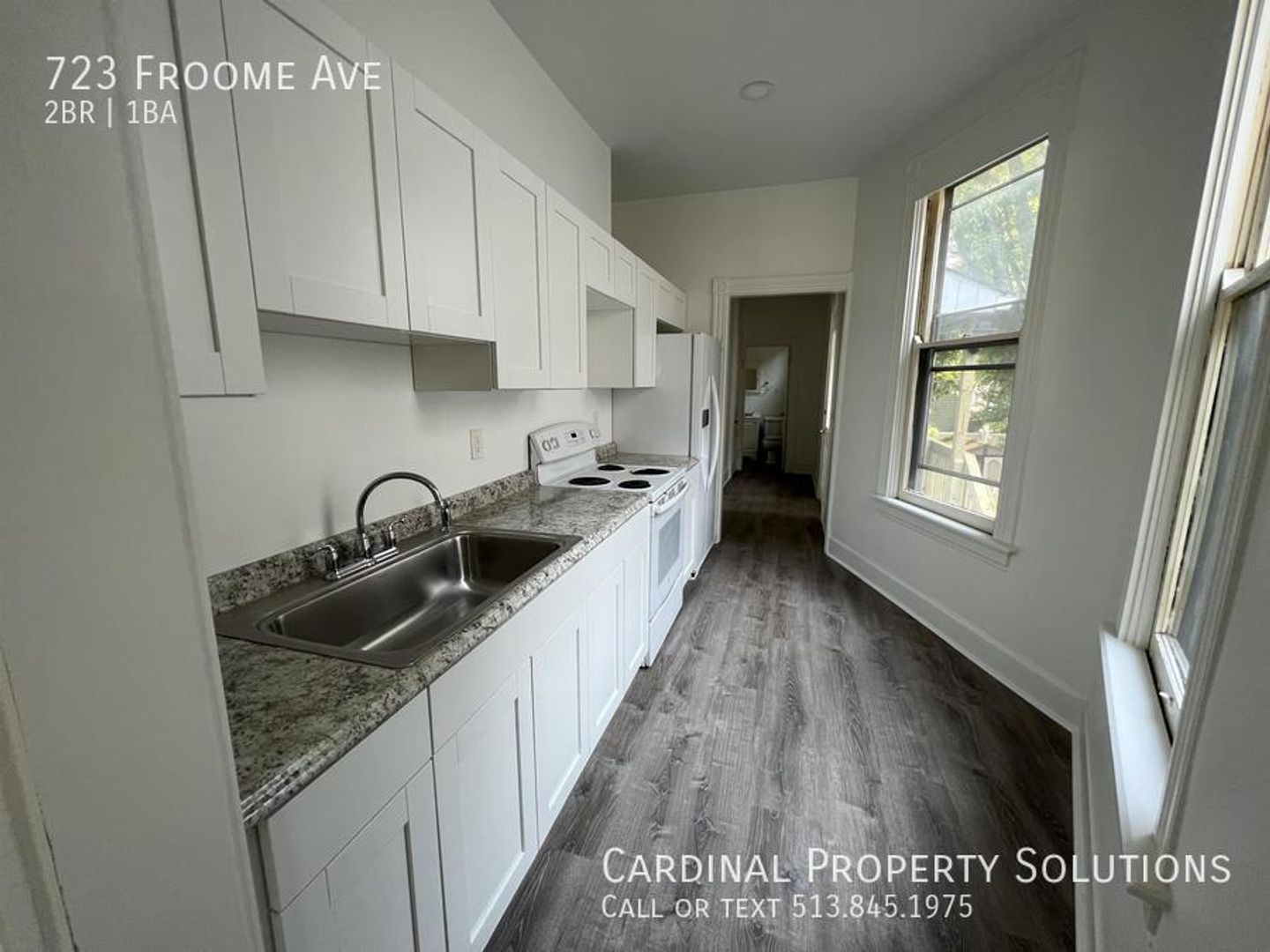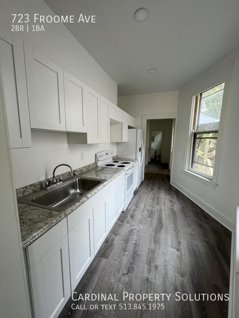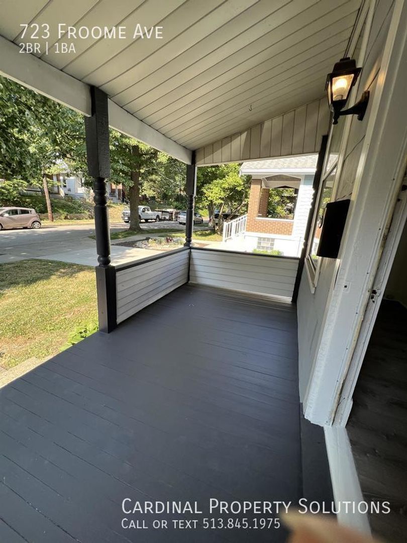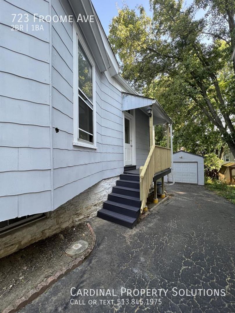 Welcome to the rental listing for a beautifully renovated 2-bedroom single-family house located in the charming neighborhood of Spring Grove in Cincinnati. This home has undergone a complete transformation with new floors and fresh paint throughout, providing a clean and modern living space for its lucky residents. As you step inside, you'll immediately notice the inviting atmosphere created by the renovated interior and charming accent fireplace. The brand-new galley kitchen boasts stylish cabinets and countertops, offering ample storage and an attractive space for culinary adventures. The house features central air conditioning, ensuring comfort during hot summer days and cool nights. Laundry hookups are available in the kitchen. The main bedroom offers extra closet space that can be utilized for additional storage or customized as a flex space to suit your needs. Whether you're looking for a home office, a dressing room, or simply a place to unwind, this versatile bonus space provides endless possibilities. You'll also appreciate the charming porches found both at the front and side of the house, perfect for enjoying a cup of coffee in the morning or relaxing with a book in the evening. For those with a vehicle or in need of extra storage, a driveway and detached garage is available, providing secure parking or a place to store your outdoor equipment. This property also features a small backyard. Located in Spring Grove, this property offers a wonderful neighborhood setting with easy access to amenities, parks, and recreational activities. It's a great opportunity to become part of a vibrant community while enjoying the comfort and style of a newly renovated home. Don't miss out on this fantastic rental opportunity.