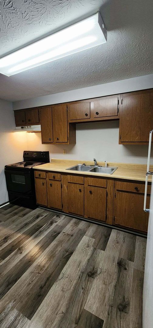 1 story , 2 bdrm unit, washer and dryer hookups, range , refrig provided, 1 bath. Easy access to parking . Onsite Storage units available for $60 mo, (storage units can rent mo to mo)