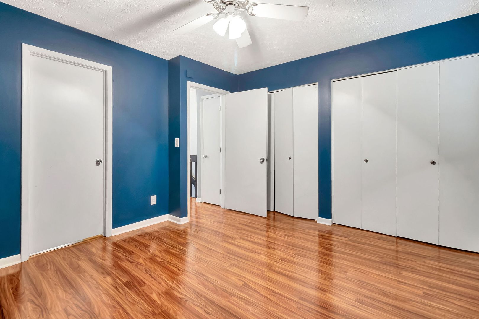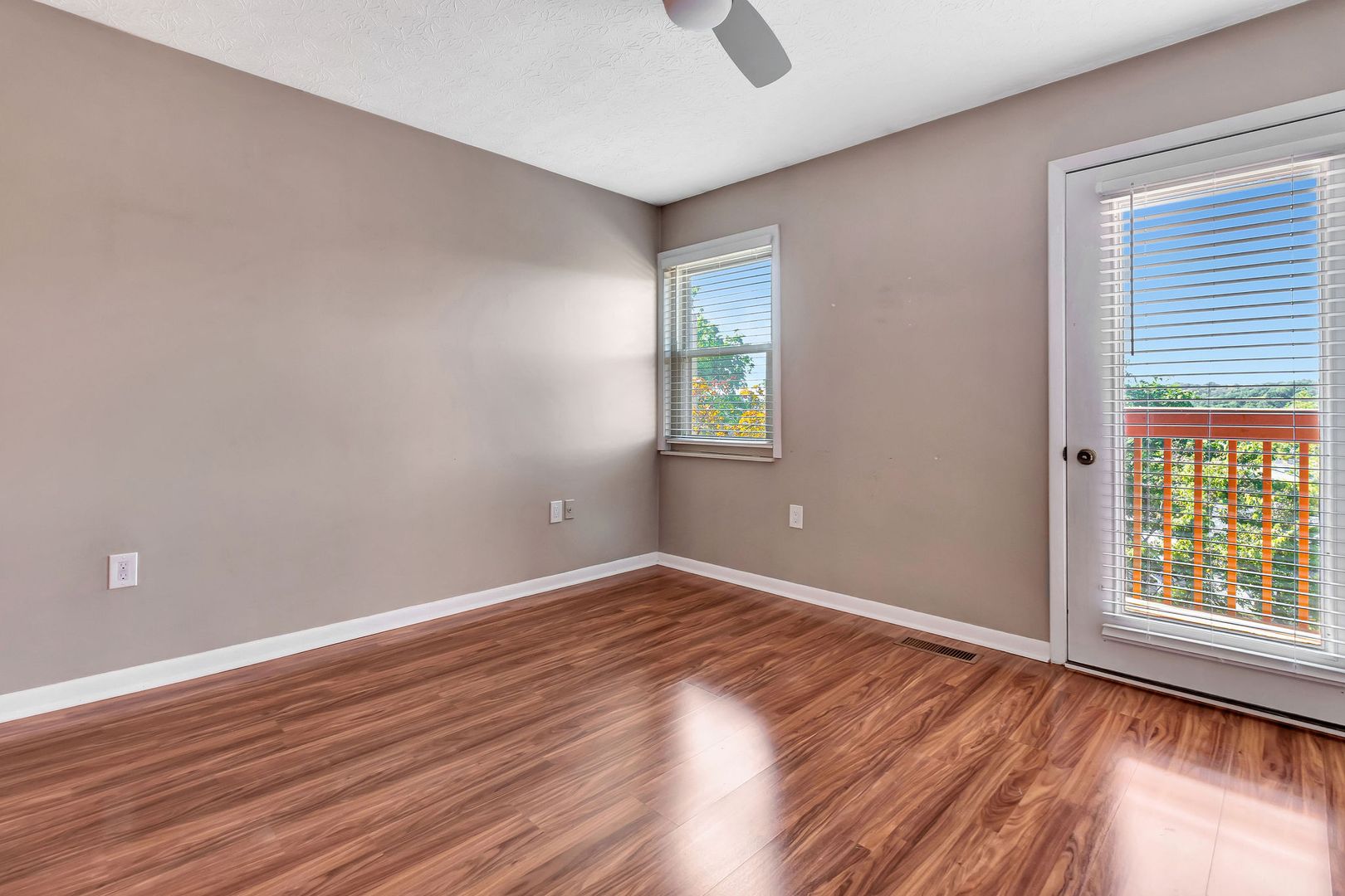Spacious primary suite with walk-in closet and private balcony