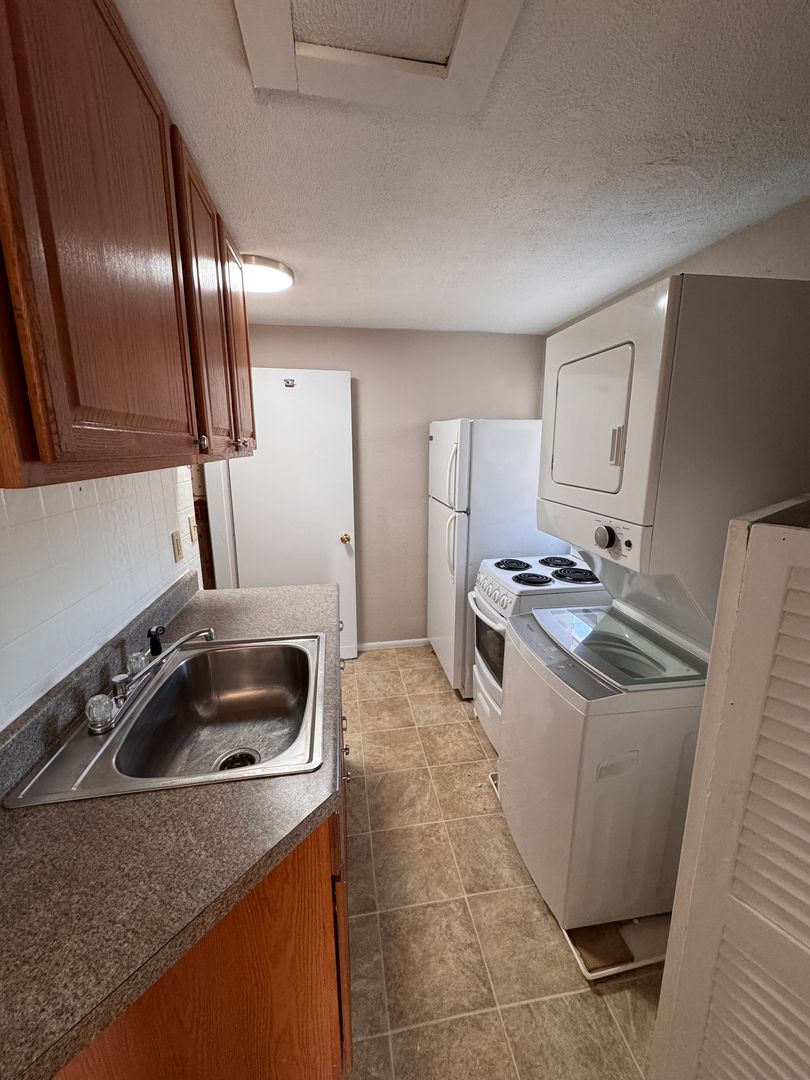 Small unit , perfect for 1 person. No pets, no smoking. Water/sewer added to rent , approx $51.50 mo for 1 person. 1 large room, kitchen and a full bath. Does have a STACK W/D hookups, apt. size oven. Tenant pays electric, water , gas. Applicants need: 580 Credit score or higher required, no criminal background or prior evictions, and 3 times the rent for monthly income.