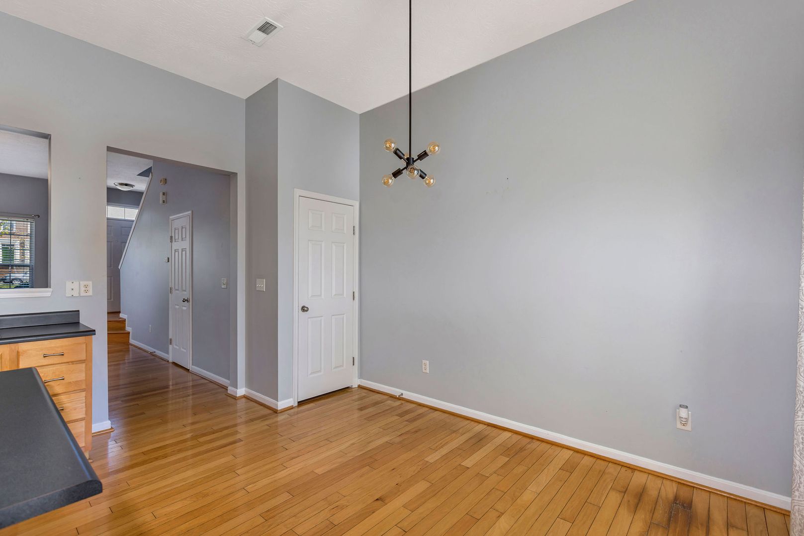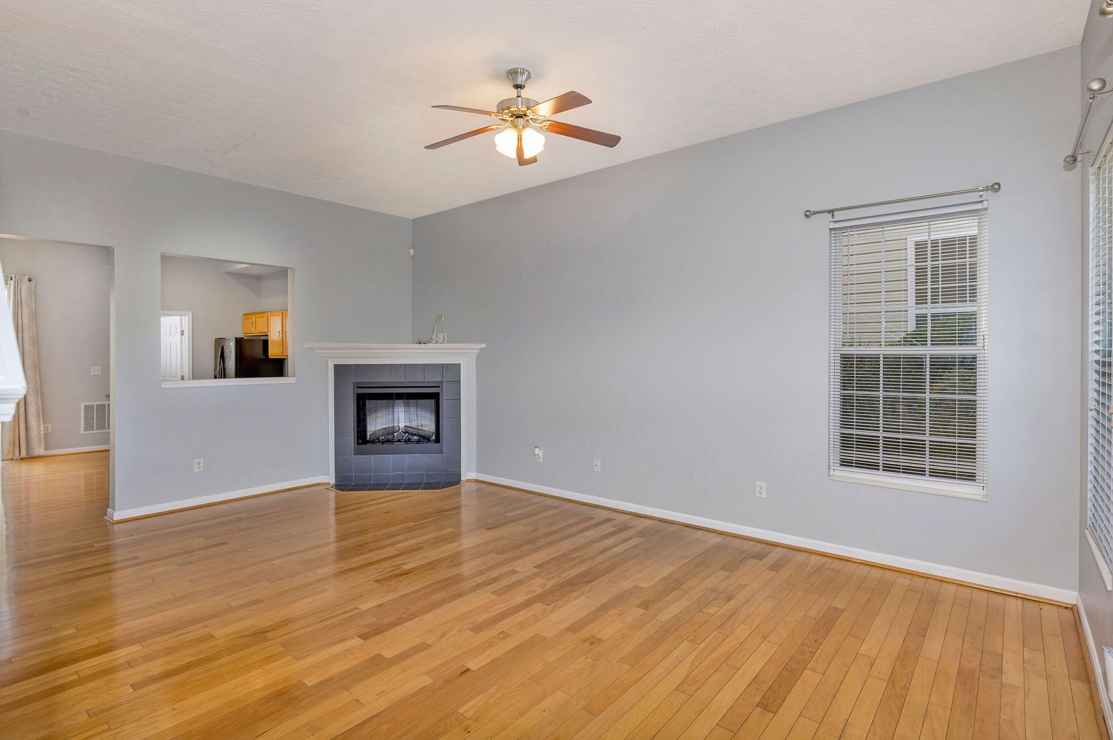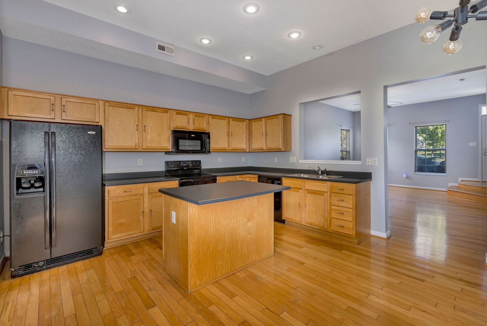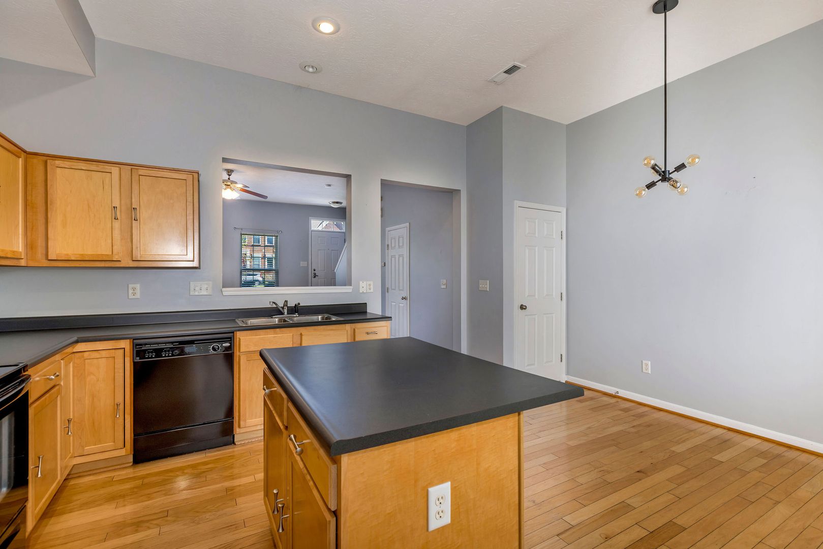 Bright and open floor plan with hardwood floors and a modern eat-in kitchen.