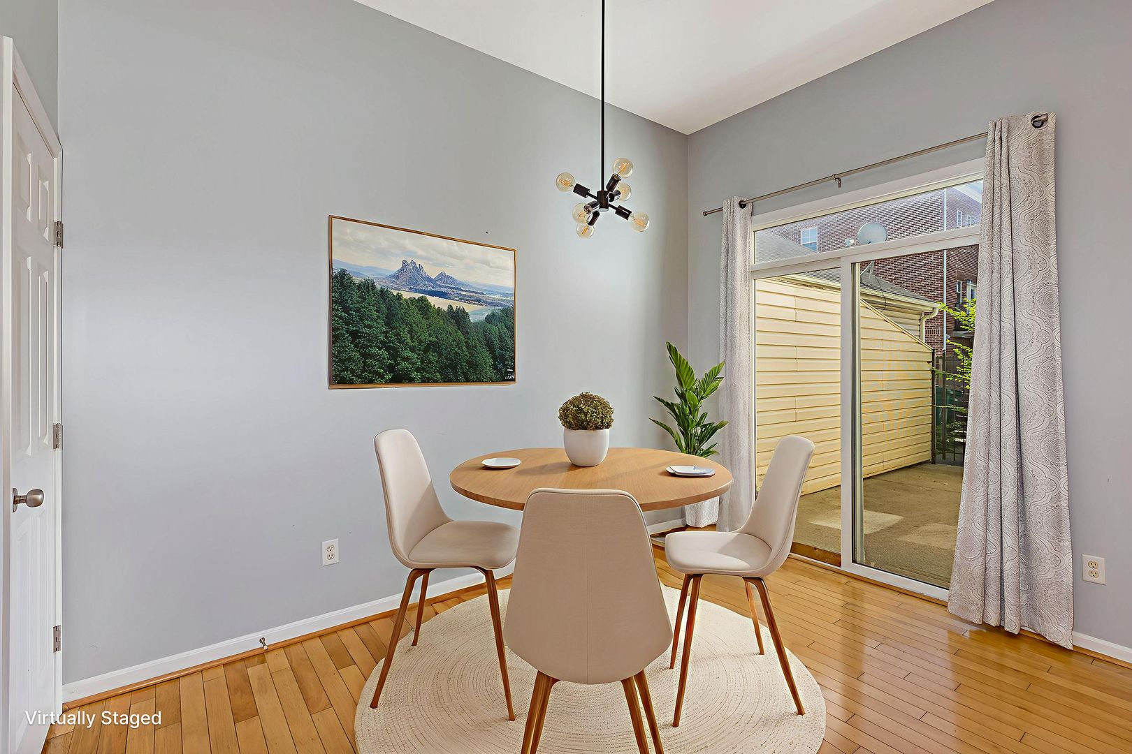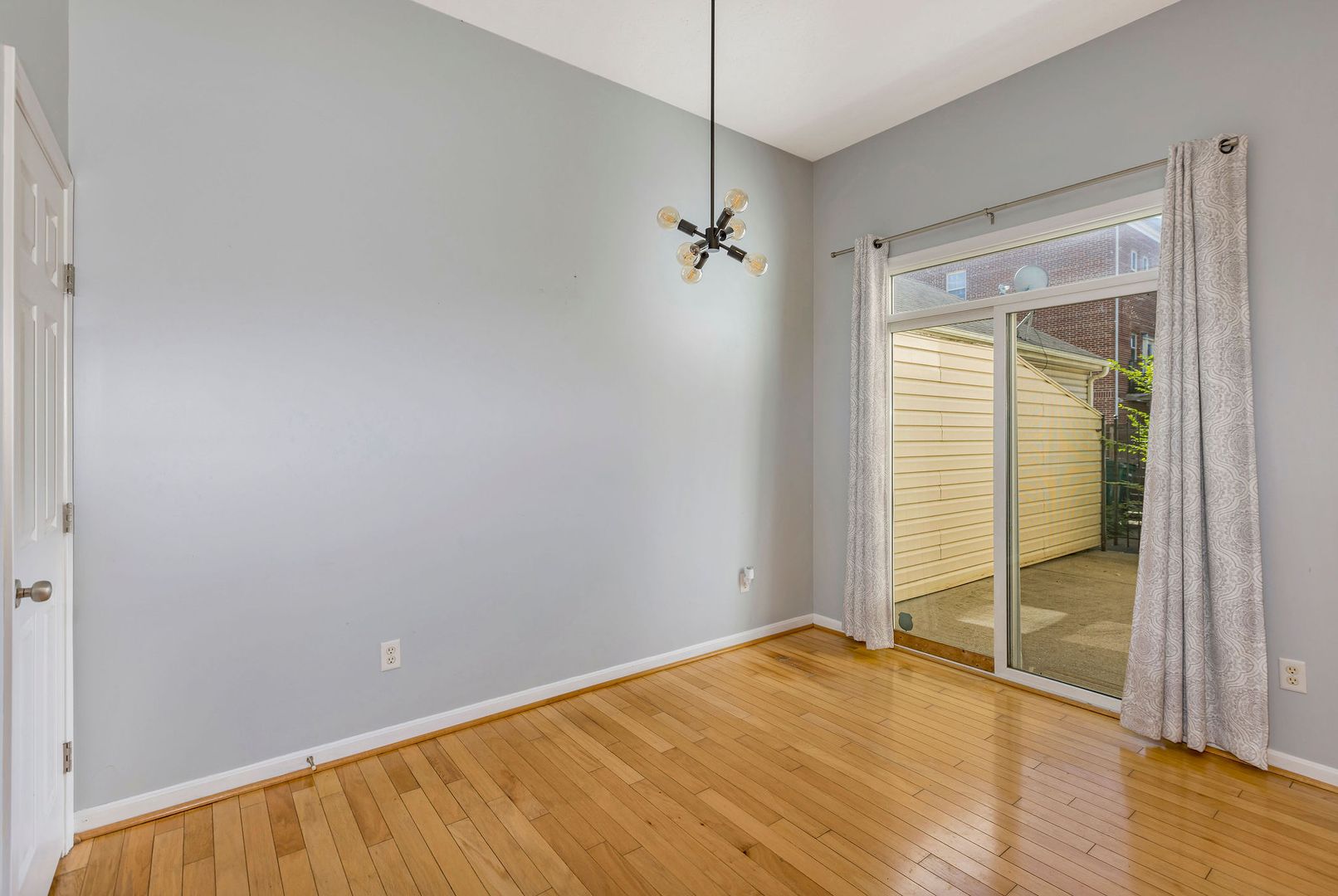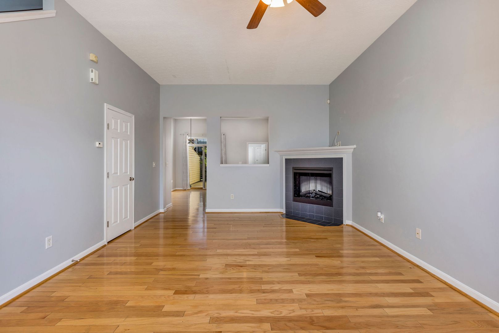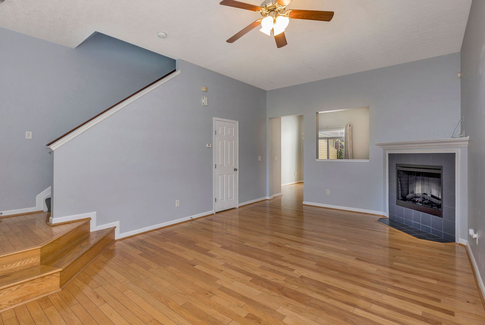 Bright and open floor plan with hardwood floors and a modern eat-in kitchen.