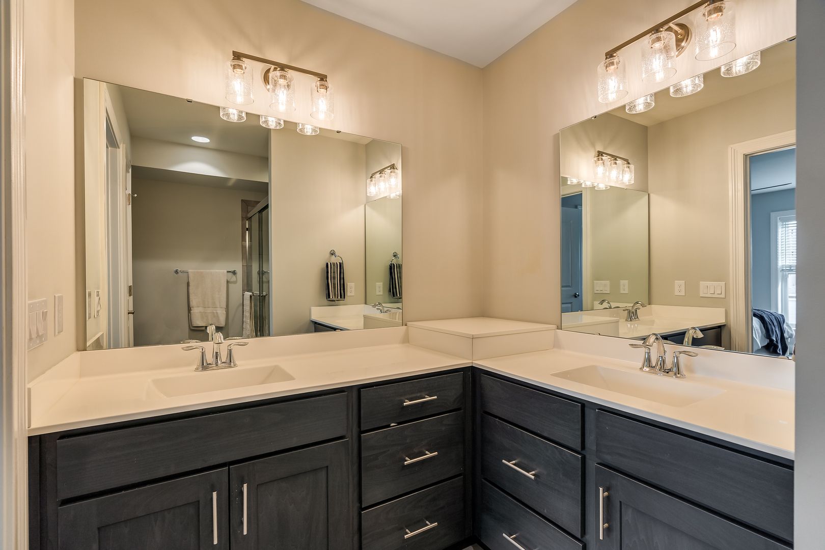 Double sink vanity in primary bath