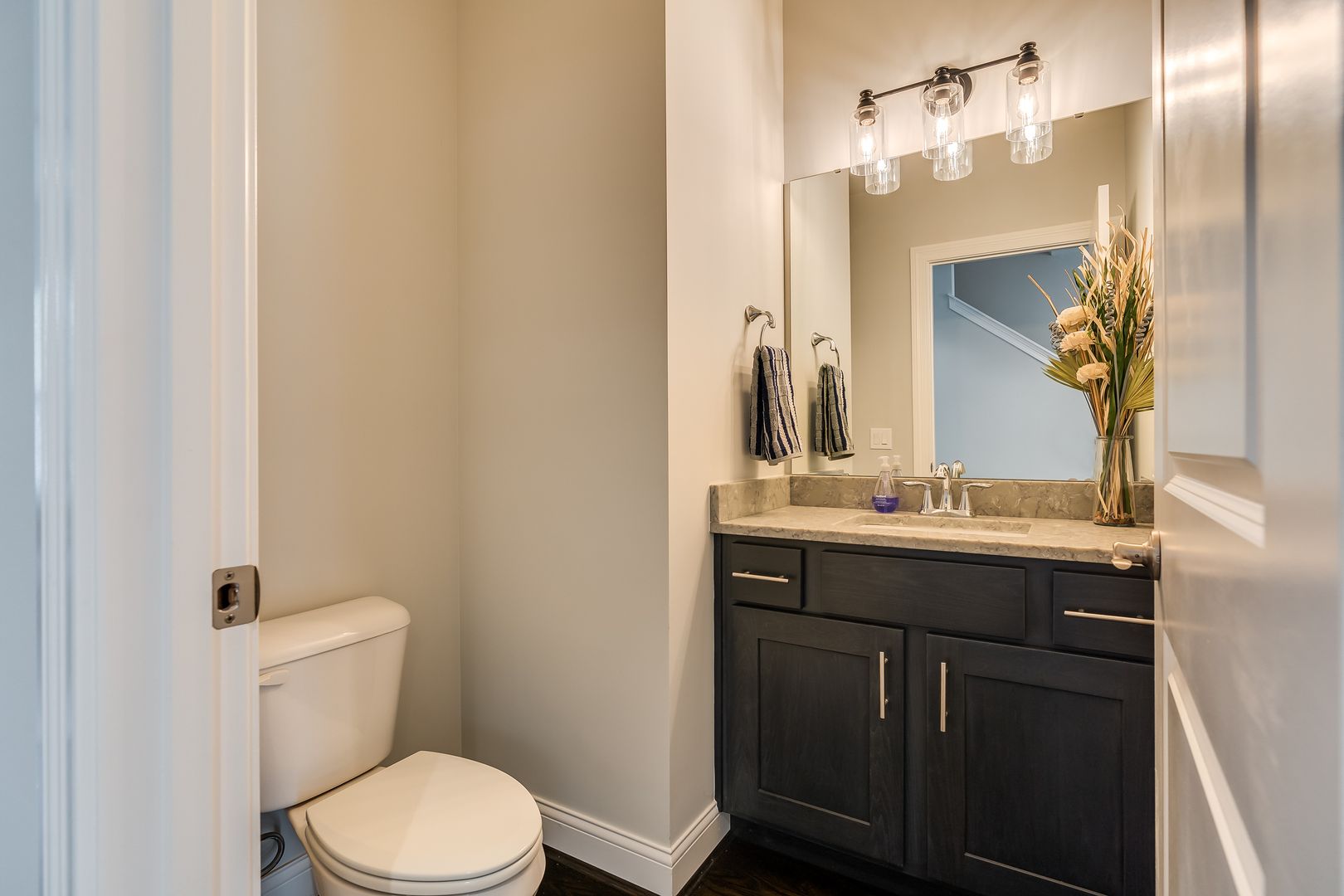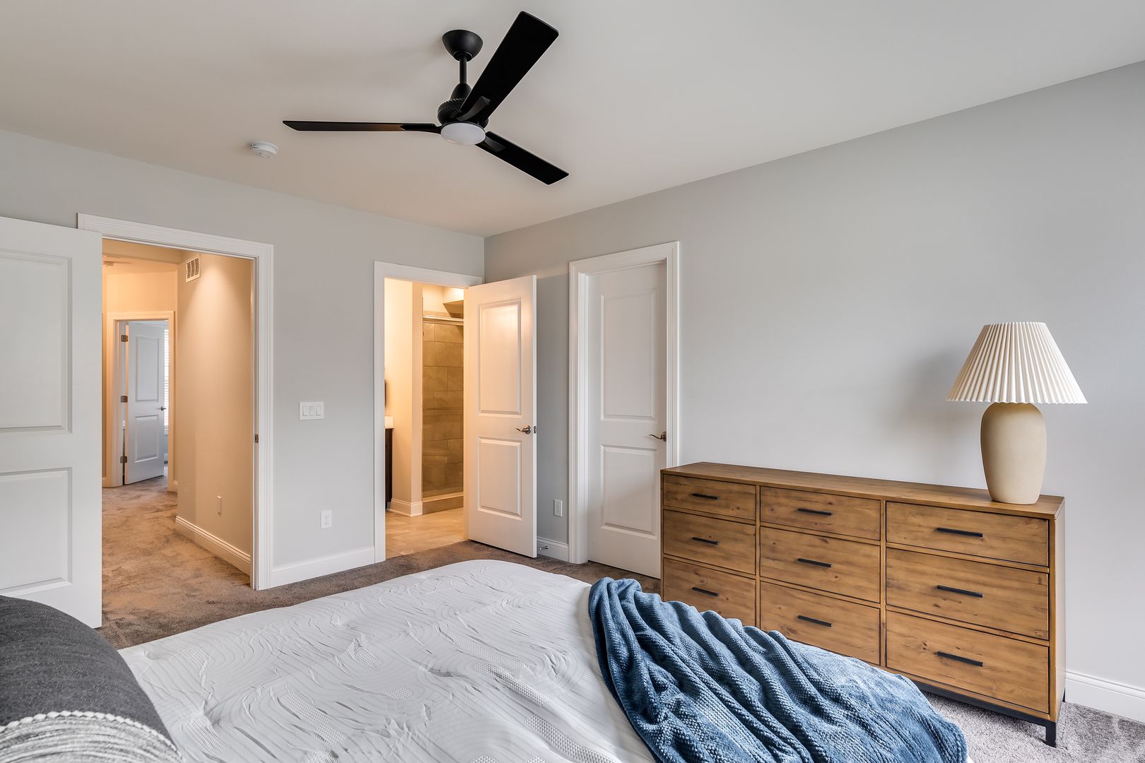 The main level features hardwood floors, while upstairs you'll find a convenient laundry room and a private walkout balcony. The primary suite includes a walk-in closet and an en-suite bath with a double vanity.