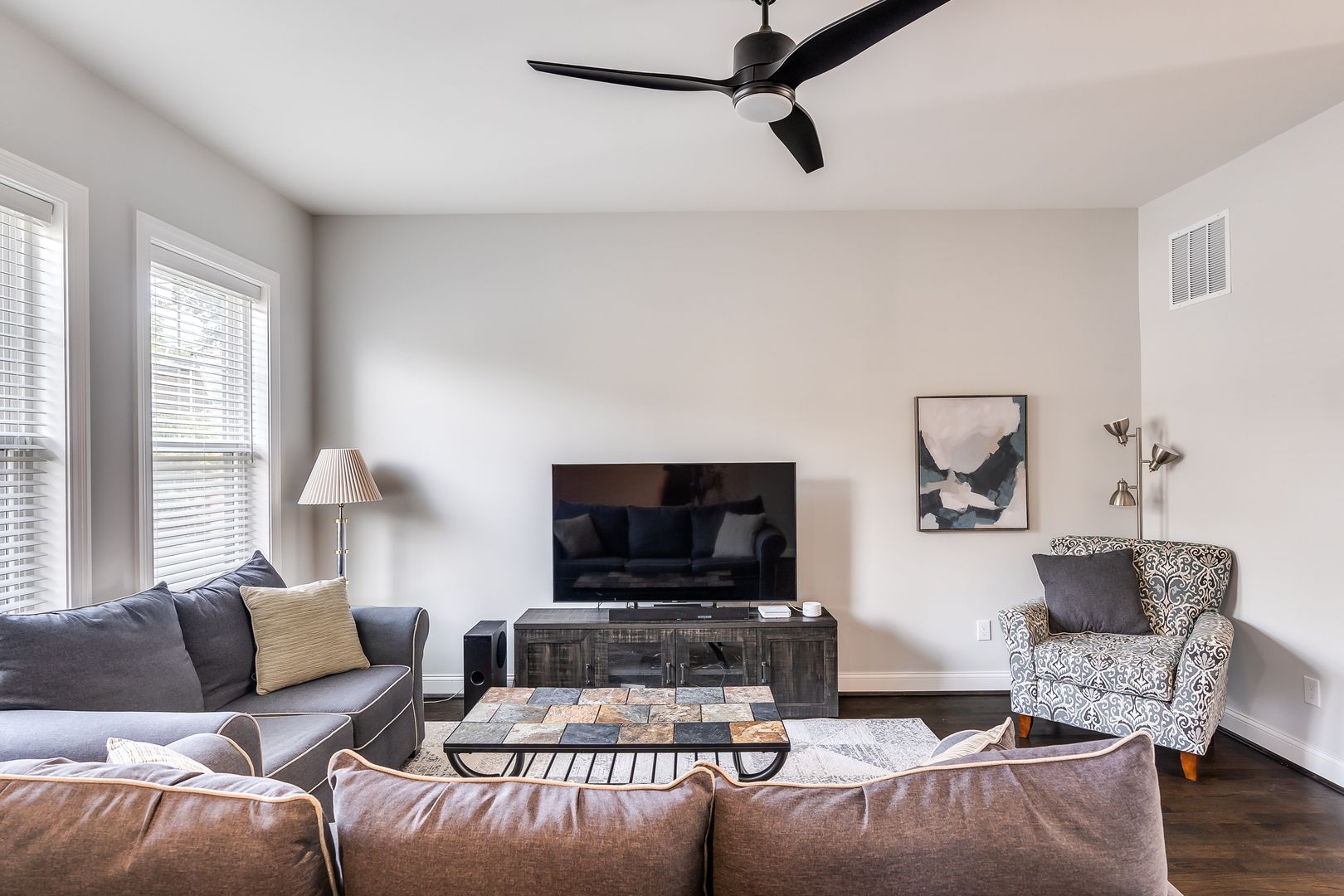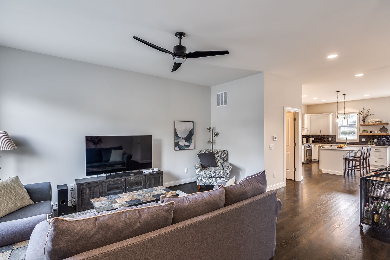 Come see this spacious, fully furnished 2-bedroom with 3rd floor bonus room which is ideal for an office or can be used as a 3rd bedroom with rooftop deck, 2.5-bathroom open-concept home, built in 2020 and located just minutes from downtown Cincinnati.