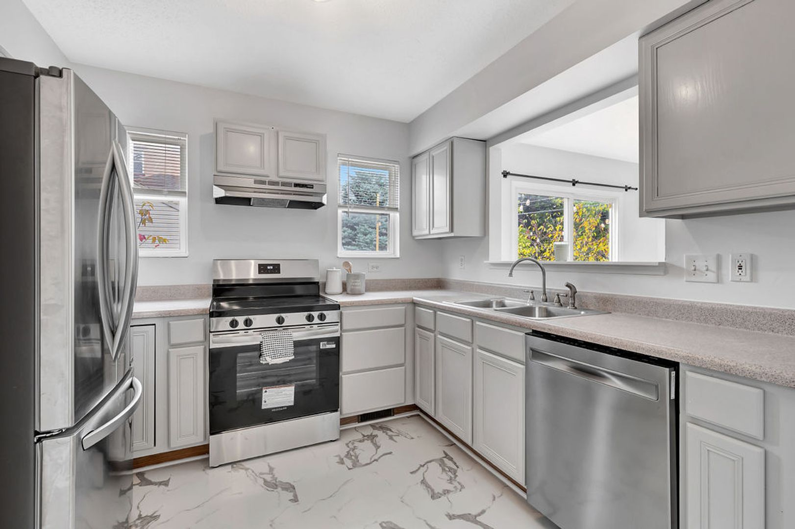 • Beautiful eat-in kitchen with brand-new stainless-steel appliances