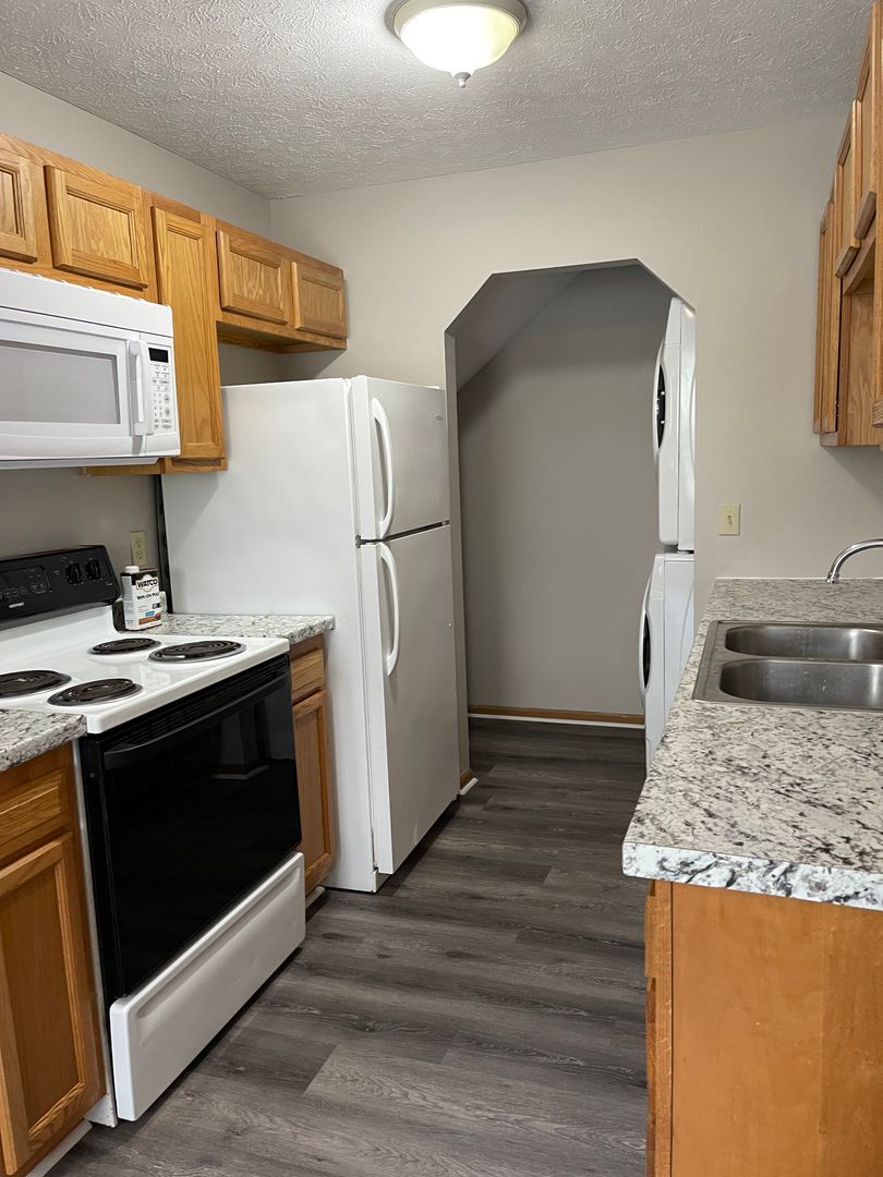 Great townhouse, remodeled, 1st floor bdrm by a 1/2 bath, upstairs 2 very large bdrms with walk in closet, full bath, living room and eat in kitchen with a laundry area. New countertops, flooring, paint, and tub! No pets and no smoking. Min. of 600 credit score, income 3 times the rent per mo, and no criminal background. 8x10 new storage unit can be added to rent. Additional available for $60 /mo. onsite. Apply at www.realsolutionsrentals.com